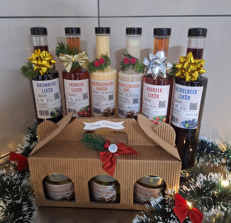 Die Likörflaschen werden mit viel Liebe weihnachtlich und festlich dekoriert – ideal als kleines Mitbringsel in der Adventszeit oder als besondere Aufmerksamkeit für Familie, Freunde und Kollegen. Jede Flasche ist ein kleines Geschenk für sich und eignet sich perfekt, um Freude zu bereiten.